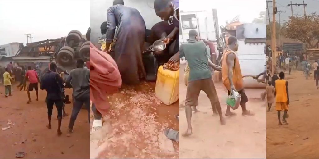 Witnesses reported that residents were seen stealing large amounts of groundnut oil dripping from the tanker.