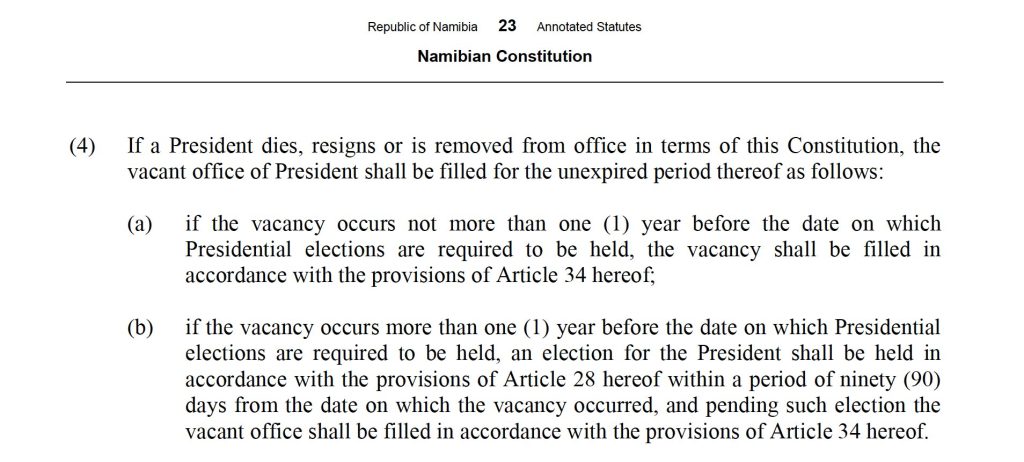 As stipulated by the Namibian constitution, President Mbumba will fill the remaining 10 months of Hage Geingob’s tenure.