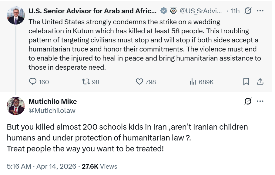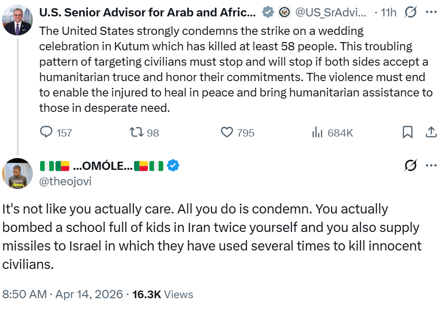 An X user also accused the United States of selective outrage, arguing that injustice anywhere in the world should be condemned, regardless of where it occurs.